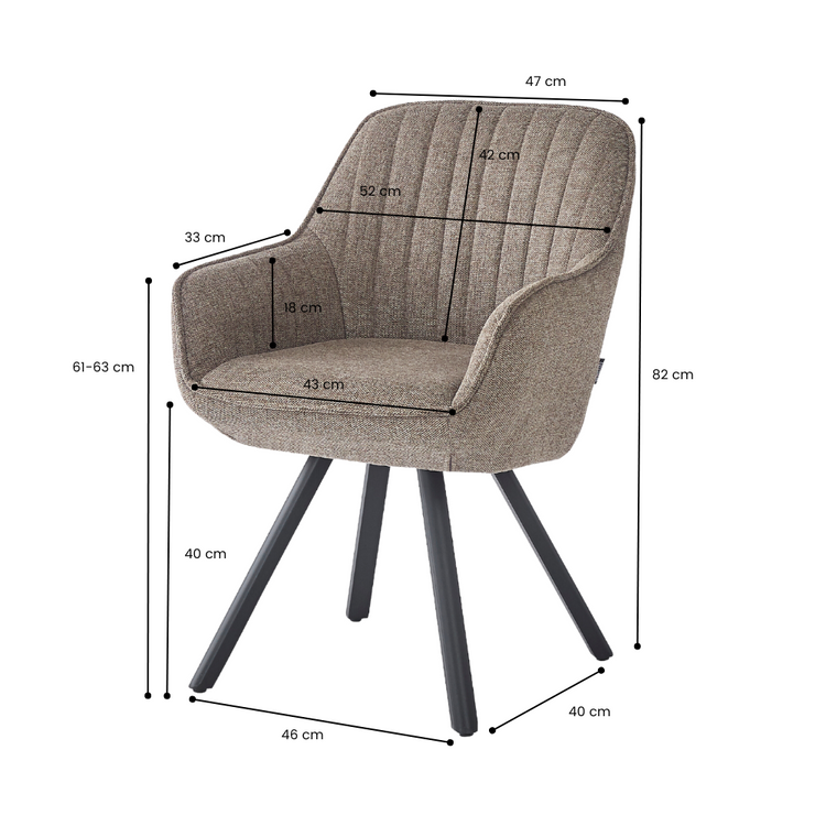Kari Esstischstuhl - Brauner Drehstuhl mit Armlehnen (stoff)