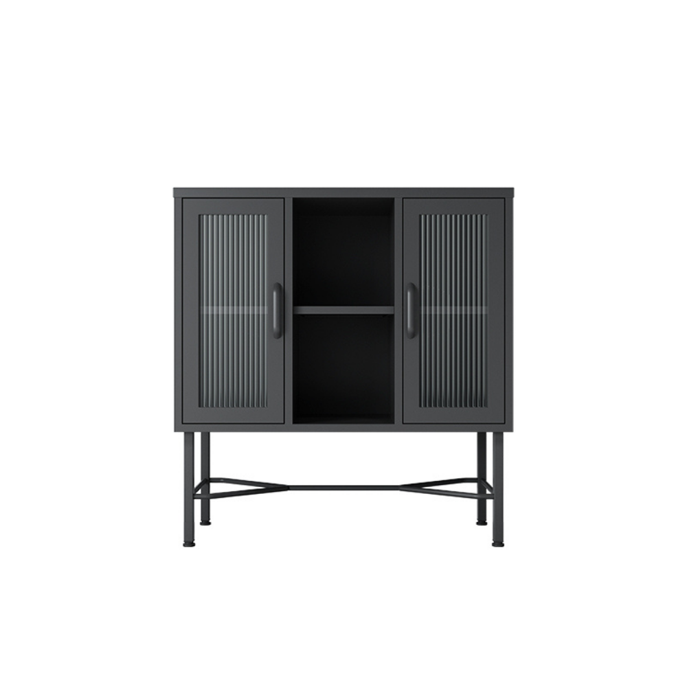 Freja Vitrine – Schwarzes Metall - Gerippte Glastüren