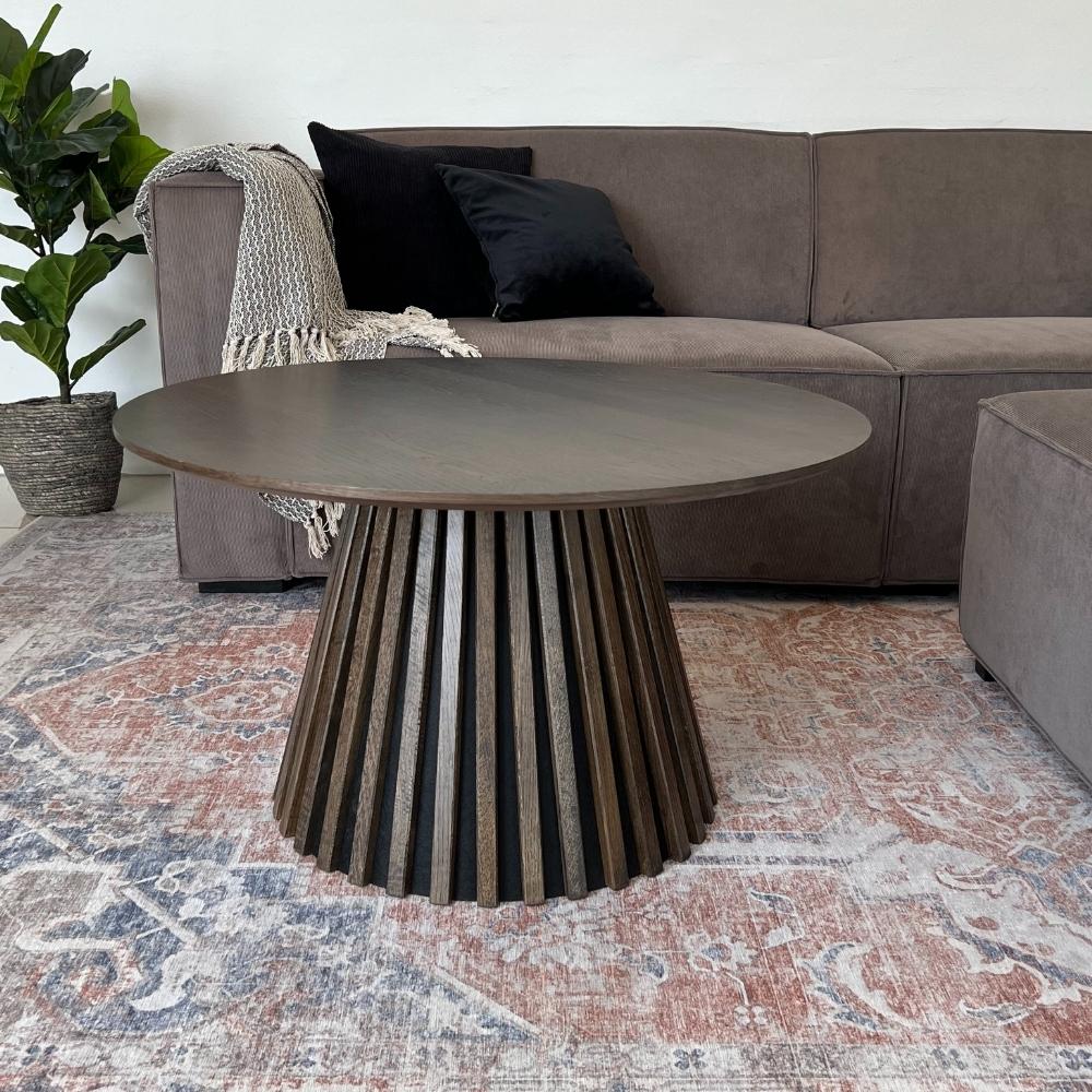 Janus Lamellen Couchtisch - Geräucherte Eiche Ø78