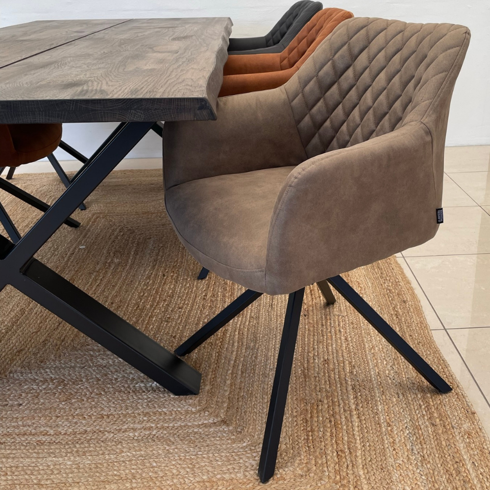 Unser neuer Hofstra & Wagner Pau Esstischstuhl ist mit feinem, strapazierfähigem Mikrofaserleder gepolstert, wodurch es echtem Leder sehr nahekommt. Der Stuhl ist mit sehr schönen Metallbeinen ausgestattet, die ihn besonders stabil machen.