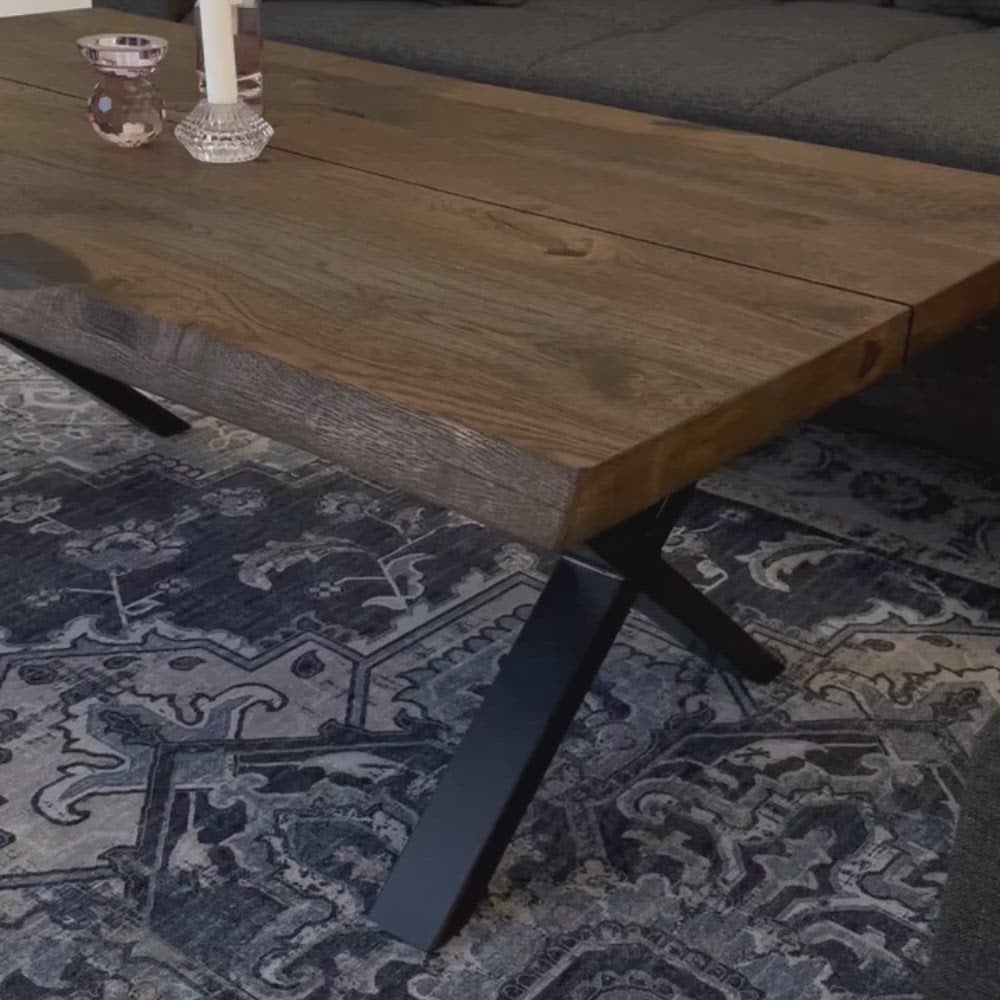 Unser geräuchert geölter Venus Couchtisch ist genau das richtige für Sie, wenn Sie auf der Suche nach einer Veränderung in Ihrem Wohnzimmer sind. Der Venus Couchtisch überzeugt mit seiner Massivholzplatte aus Eiche, die durch eine sichtbare Maserung eine urige Gemütlichkeit ausstrahlt. Zusammen mit seinen markanten, pulverbeschichteten Tischbeinen ergibt sich ein perfektes Zusammenspiel von moderner Gemütlichkeit. Der Couchtisch passt perfekt zu unserem „Venus Esstisch – geräuchert geölt“.
