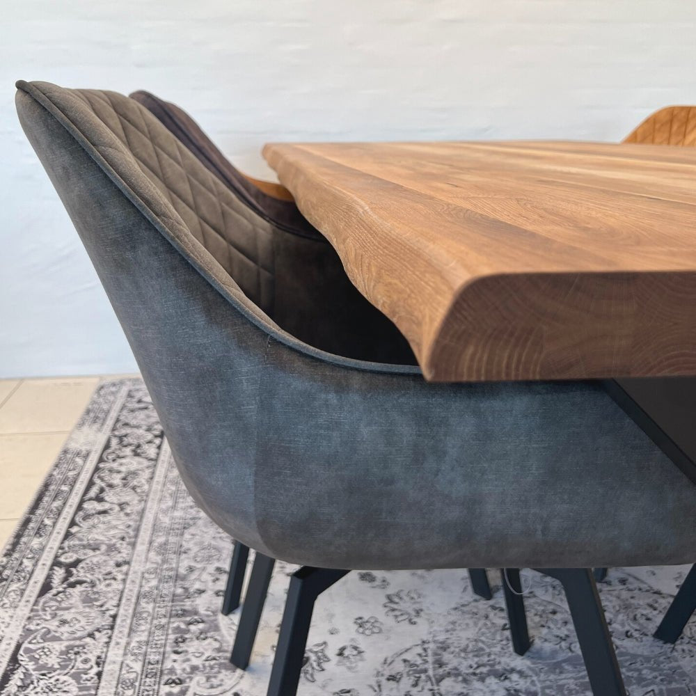 Unser naturgeölter Venus Esstisch wird zum Hingucker in Ihrer Küche, Ihrem Wohn- oder Esszimmer. Der Esstisch wird von einem Rundumpacket an Natürlichkeit geprägt. Seine Natürlichkeit erhält dieser Esstisch durch seine naturbelassene Farbe und den Rand des Tisches, der die ursprüngliche Form des Baumstammes beibehalten hat. Diese Kombination verleiht dem Tisch eine wunderschöne Lebendigkeit, als hätten Sie ein kleines Stückchen Wald in Ihrem Zuhause. Gleichzeitig verliert der Esstisch durch seine pulverbeschichteten Tischbeine aber keinesfalls an Modernität.