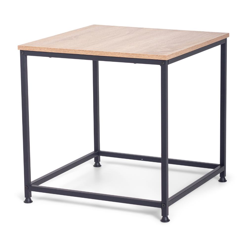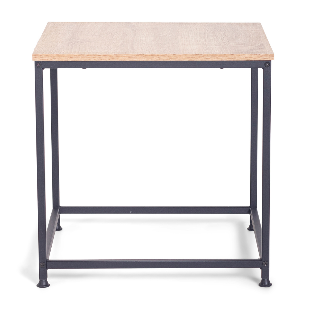 Vita Ecktisch mit schwarzem Stahlrahmen und Tischplatte im Eichenlook. Ein schöner, stilreiner Ecktisch, der auch als Couchtisch verwendet werden kann. Schieben Sie zwei Ecktische zusammen und Sie können Sie als Couchtisch verwenden.