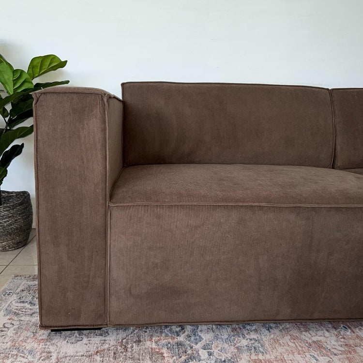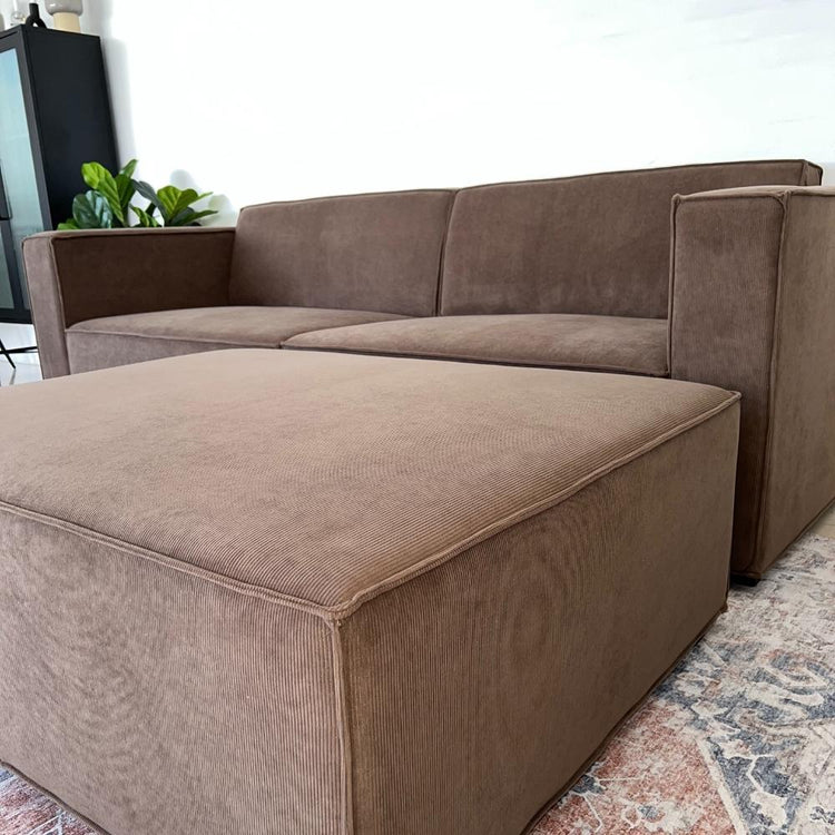 Balu Sofa mit Polsterhocker - Brauner Cord