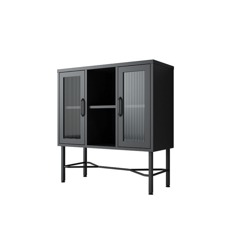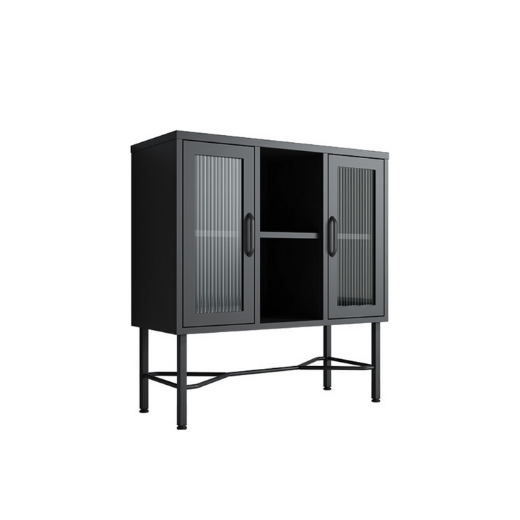 Freja Vitrine – Schwarzes Metall - Gerippte Glastüren